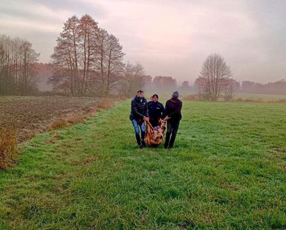 Po około godzinie intensywnych działań policjanci odnaleźli kobietę w kompleksie leśnym około dwóch kilometrów od miejsca zamieszkania na podmokłym bagnistym terenie. Seniorka była wyczerpana i wychłodzona. Funkcjonariusze natychmiast udzielili jej pierwszej pomocy okryli kocem udzielili wsparcia psychicznego i monitorowali jej stan do przyjazdu pogotowia. Następnie przekazano ją pod opiekę specjalistów.